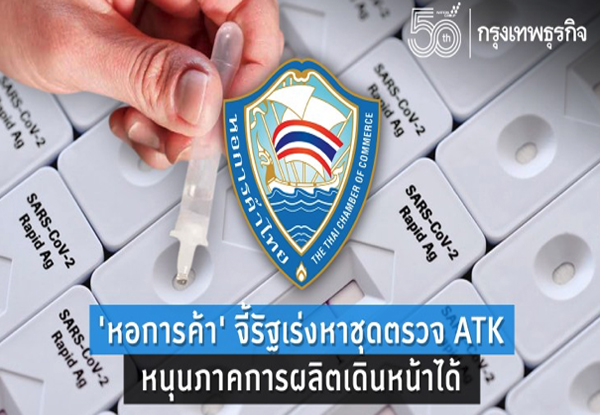 ทางหอการค้าไทยได้เสนอให้รัฐบาลรัฐบาลในการสนับสนุนและจำหน่าย Rapid Antigen test Kit (ATK) ในราคาที่ถูก มีความหลากหลาย มีคุณภาพ และหาซื้อได้ง่าย เพื่อให้ผู้ประกอบการและประชาชนสามารถเข้าถึงได้ ซึ่งประเทศไทยควรเร่งดำเนินการจัดหาเพิ่มขึ้น รวมถึงควรสนับสนุนให้สามารถซื้อขายได้ในรูปแบบ B2B ระหว่างผู้นำเข้าและผู้ประกอบการ ภายใต้การควบคุมดูแล คุณภาพและมาตรฐานของกระทรวงสาธารณสุข นอกจากนั้นควรมีการให้ความรู้ ความเข้าใจถึงวิธีใช้งานและวิธีกำจัดภายหลังการใช้งานด้วย และในระยะถัดไปควรมีการวางแผนเพื่อมีส่งเสริมการลงทุนให้มีการผลิต ATK ในประเทศ โดยสามารถให้เอกชนร่วมเข้าไปสนับสนุนในส่วนนี้ได้
