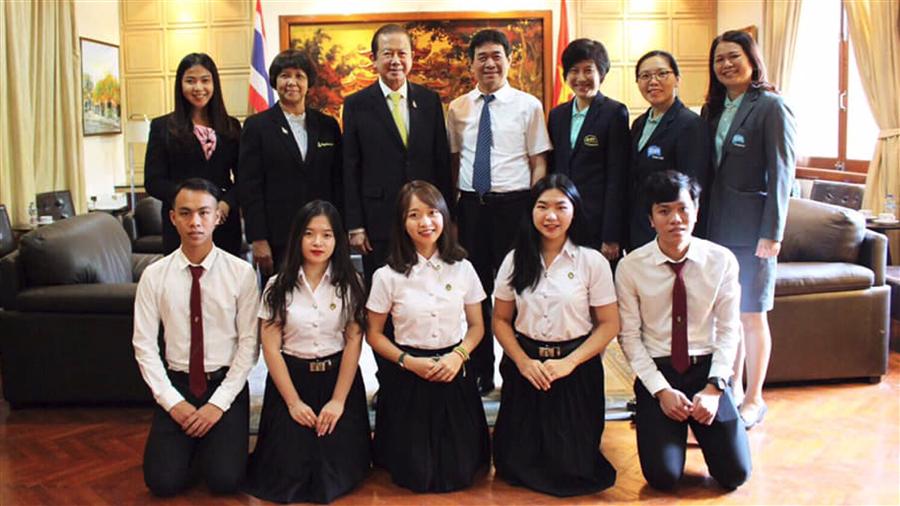 เมื่อวันที่ 6 มีนาคม 2563 ผศ.ดร.พิมผกา โพธิลังกา รองอธิการบดีฝ่ายวิจัยและวิชาการต่างประเทศ พร้อมด้วย อาจารย์อัจฉริยา ครุธาโรจน์ ผู้ช่วยอธิการบดีด้านวิเทศสัมพันธ์ และ ผศ.นิตยา มูลปินใจ ผู้ช่วยคณบดีฝ่ายวิชาการต่างประเทศและสารสนเทศ คณะมนุษยศาสตร์และสังคมศาสตร์ นำนักศึกษาทุนแลกเปลี่ยนภาษาและวัฒนธรรมไทยระยะสั้นชาวเวียดนามจำนวน 5 คน เข้าพบนายเหวียน หาย บั่ง (Nguyen Hai Bang) เอกอัครราชทูตสาธารณรัฐสังคม นิยมเวียดนามประจำประเทศไทย
