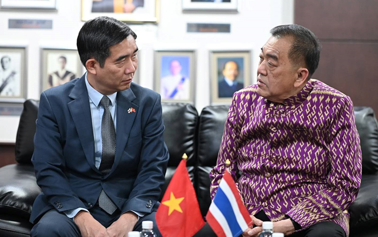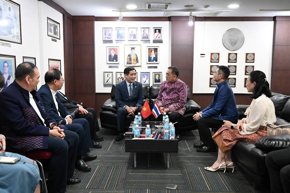 วันที่ 7 เมษายน 2569 คุณจริยา จิราธิวัฒน์ ประธานสภาธุรกิจไทย-เวียดนาม และ กรรมการบริหาร สภาหอการค้าแห่งประเทศไทย พร้อมด้วย ดร.พจน์ อร่ามวัฒนานนท์ ประธานกรรมการหอการค้าไทยและสภาหอการค้าแห่งประเทศไทย คุณวิบูลย์ รองประธานกรรมการ หอการค้าไทย คุณสาโรช ชยาวิวัฒน์กุล รองประธานกรรมการ หอการค้าไทย คุณธวัชชัย เศรษฐจินดา กรรมการเลขาธิการ หอการค้าไทยและสภาหอการค้าแห่งประเทศไทย และคุณศักดิ์ชัย ธนบุญชัย ที่ปรึกษา สภาหอการค้าแห่งประเทศไทย ให้การต้อนรับ ท่านทูต ฝั่ม เหวียด หุ่ง (H.E. Mr. Pham Viet Hung) เอกอัครราชทูตเวียดนามประจำประเทศไทย และนางอวาน ไห หองเลขานุการเอก ฝ่ายกิจการเศรษฐกิจ จากสถานเอกอัครราชทูตเวียดนามฯ ณ มหาวิทยาลัยหอการค้าไทย